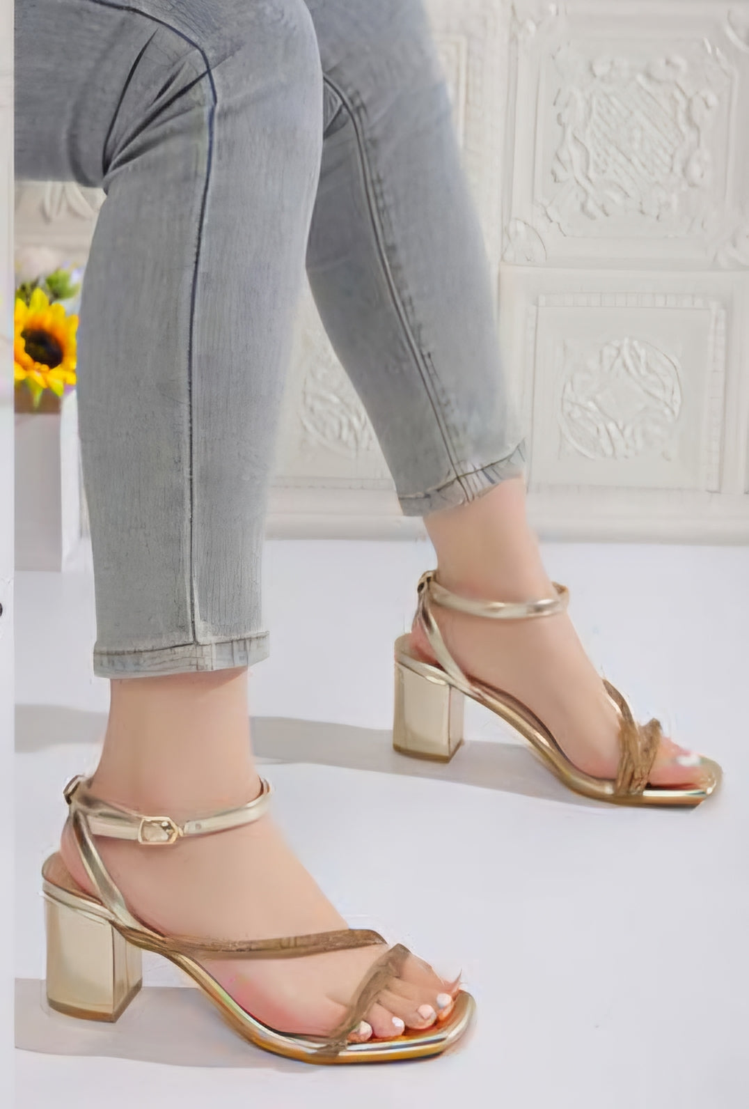 Sandalo in pelle. Cinturino regolabile alla caviglia,Fibbie centrali con strass, punta quadra , tacco a blocco quadrato. Super comodo e versatile